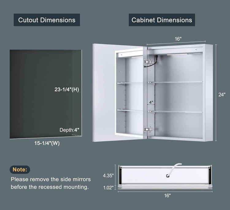 16x24 Inch LED Lighted Medicine Cabinet with Mirror – Wall Surface or Recessed