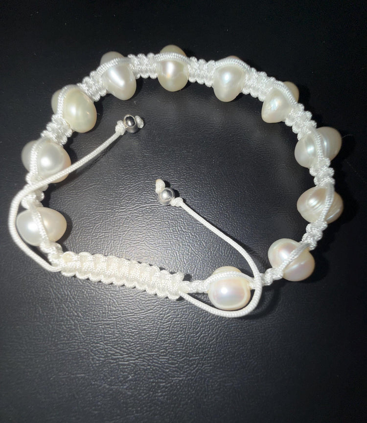Genuine Freshwater Pearl Bracelets Woven Stretch Bead for Women White