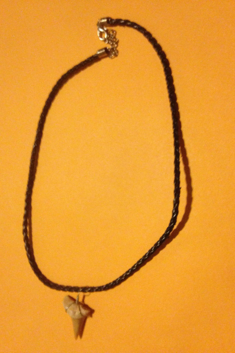 Real Genuine 1 1/4" White Tip Shark Tooth Pendant on an Adjustable 17.5" Braided Leather Choker Necklace