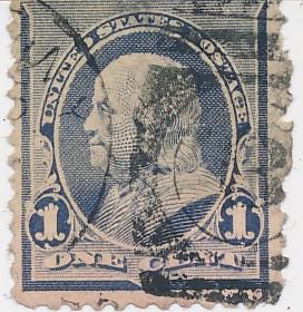 US Stamp #219 1 Cent Dull Blue Benjamin Franklin 1890