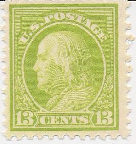 US Stamp #513 13 Cent Apple Green Ben Franklin 1917