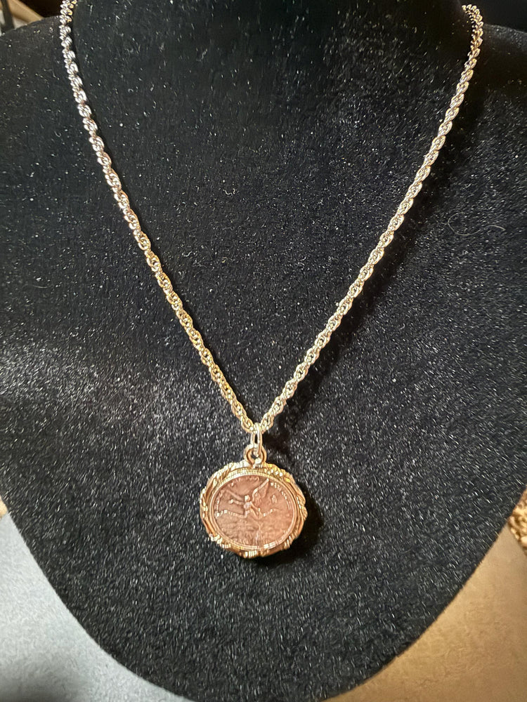 Vintage Mexican Coin 1/200 oz .999 Silver Coin with Bezel & 24" Chain