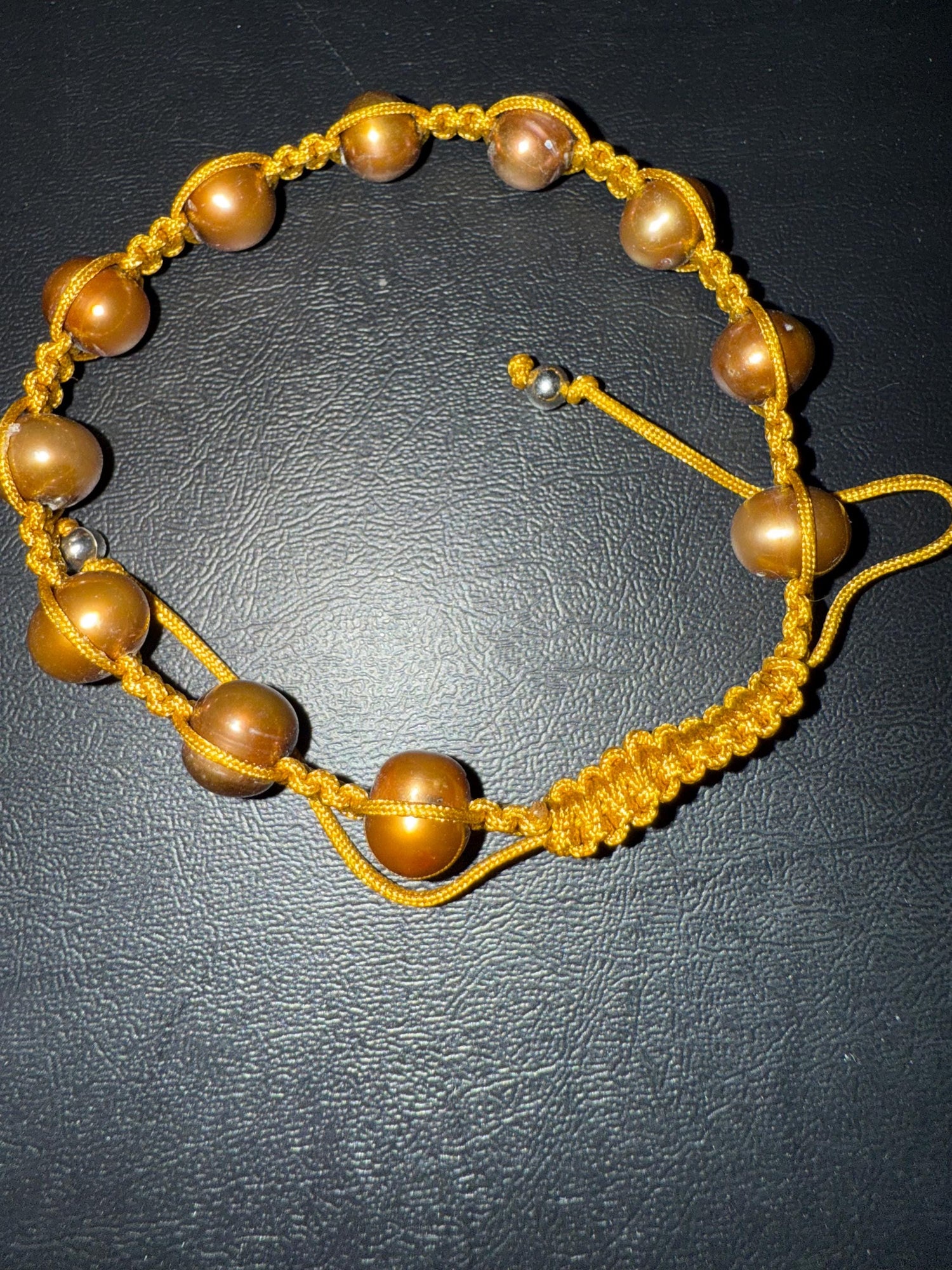 Genuine Freshwater Pearl Bracelets Woven Stretch Bead for Women Gold