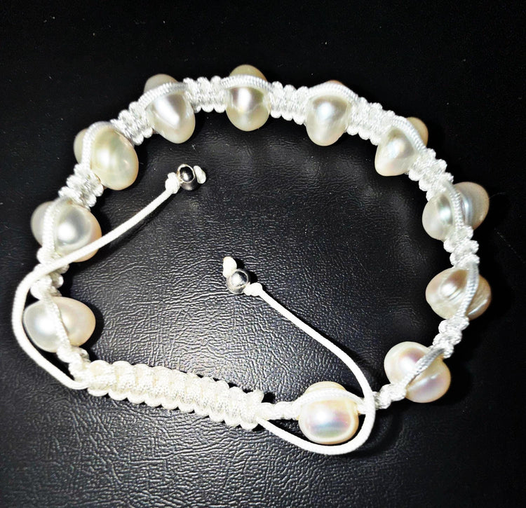Genuine Freshwater Pearl Bracelets Woven Stretch Bead for Women White