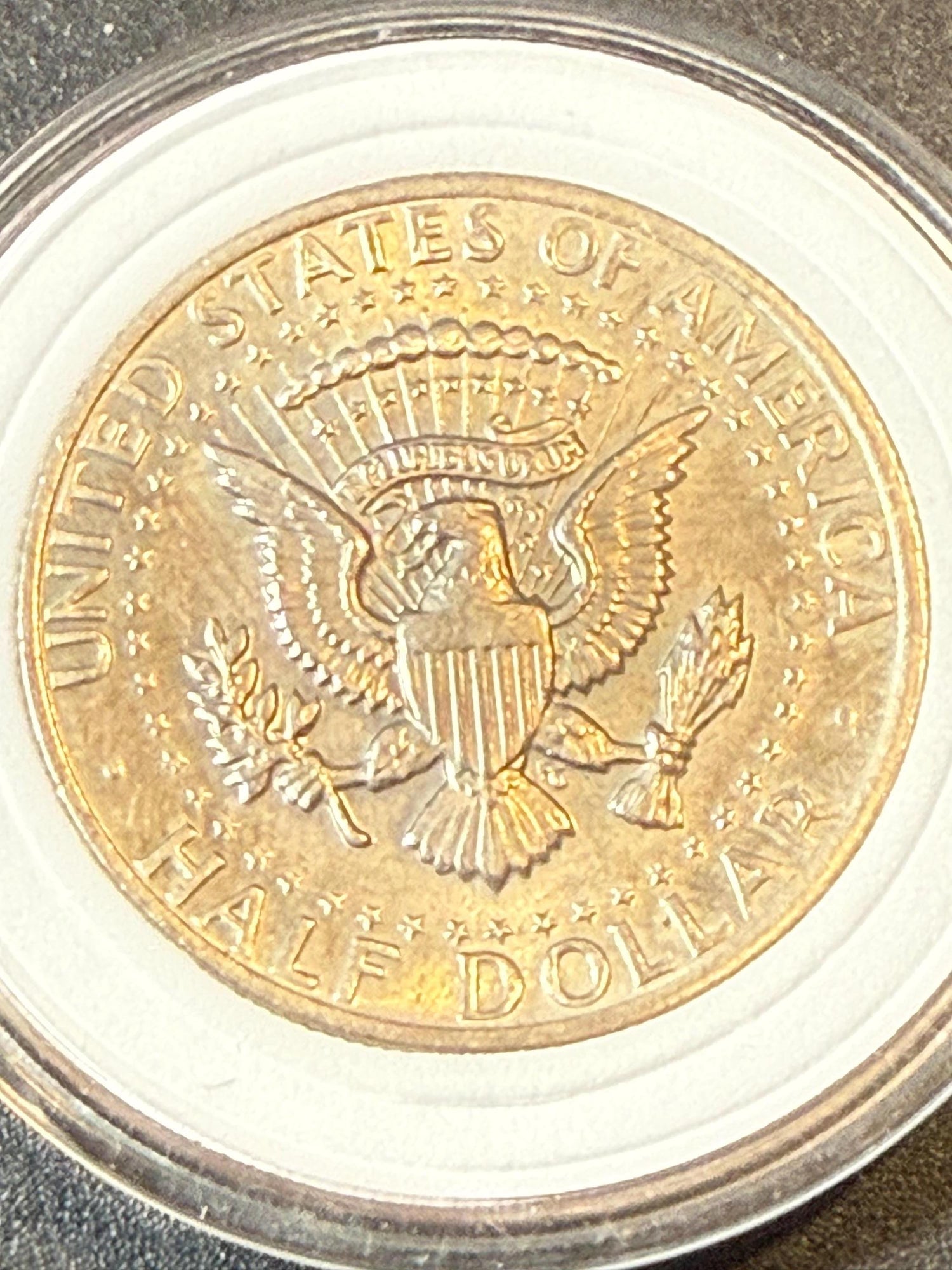 JFK Kennedy 1972 Half Dollar (No Mint Mark) AU Condition US Coin Enclosed in Hard Plastic